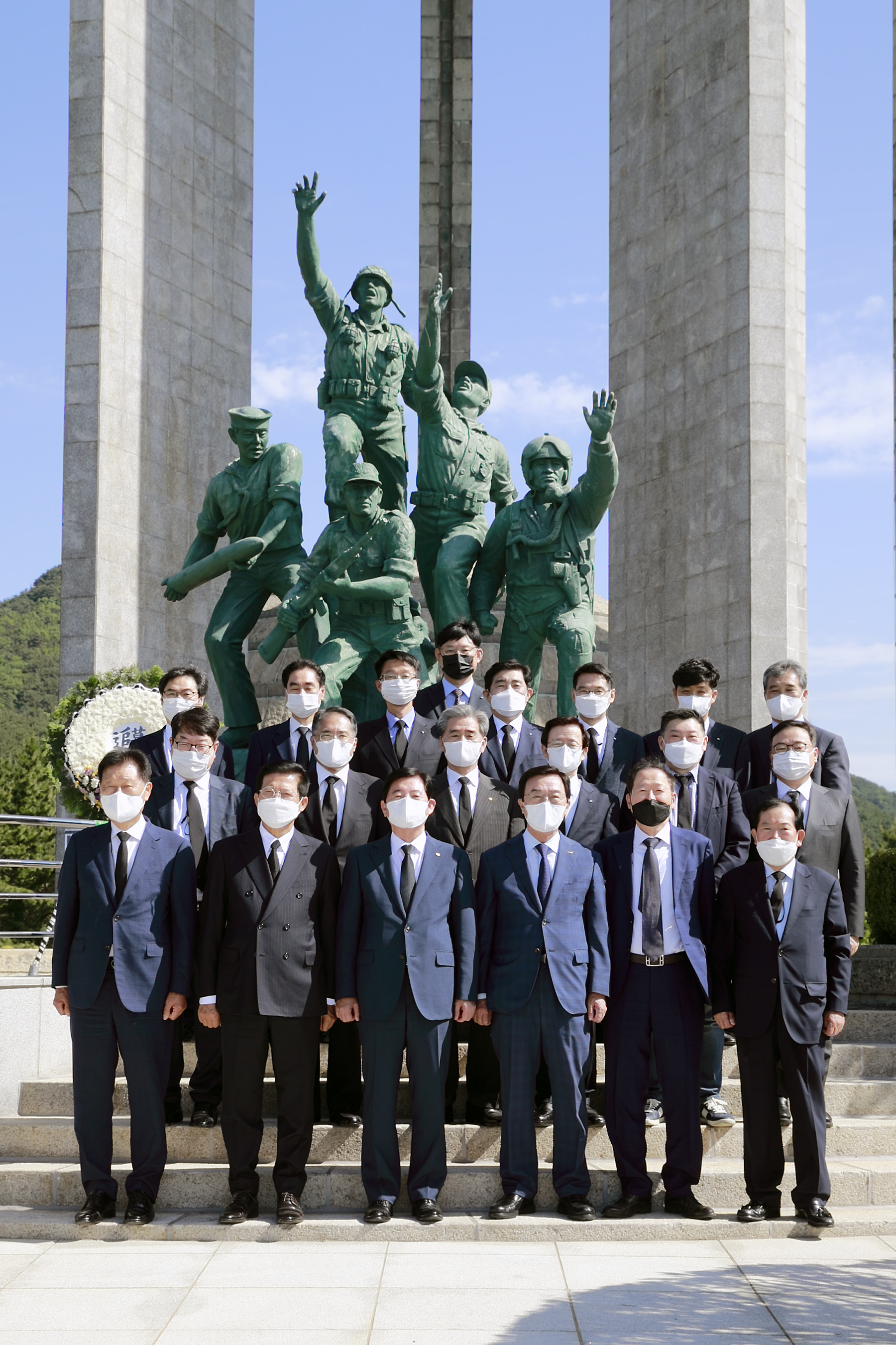 부산상공회의소 허용도 회장을 비롯한 지역 상공인들은 지난 6월 2일(화) 오전 9시, 제65회 현충일 및 호국보훈의 달을 맞아 상의 임직원들과 함께 중앙공원 충혼탑(중구 소재)을 참배했다.