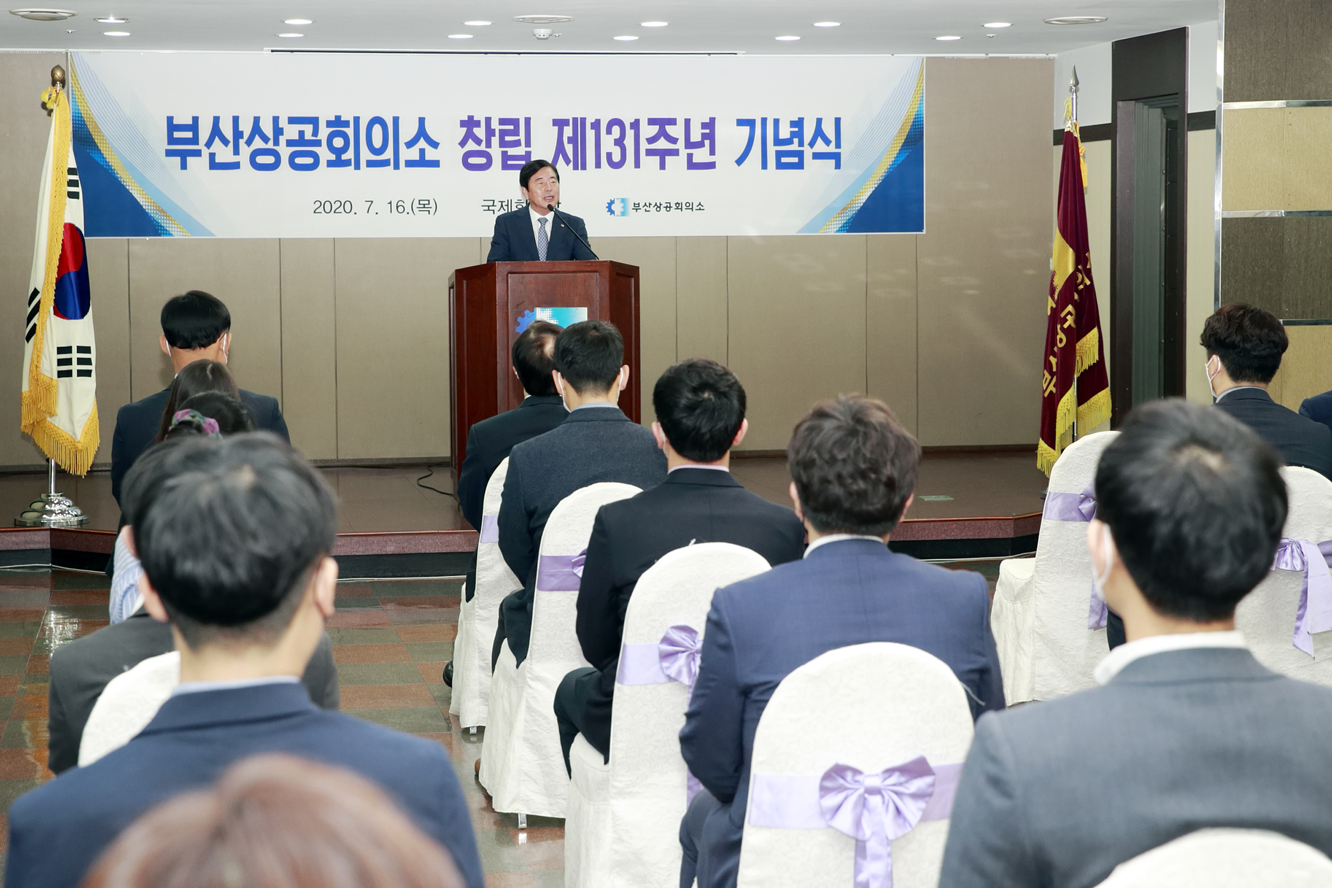 부산상공회의소는 올해 창립 131주년을 맞이하여, 16일(목) 11시 30분 2층 국제회의장에서 부산상의 전 직원이 참석한 가운데 창립 131주년 기념식을 개최하였다.