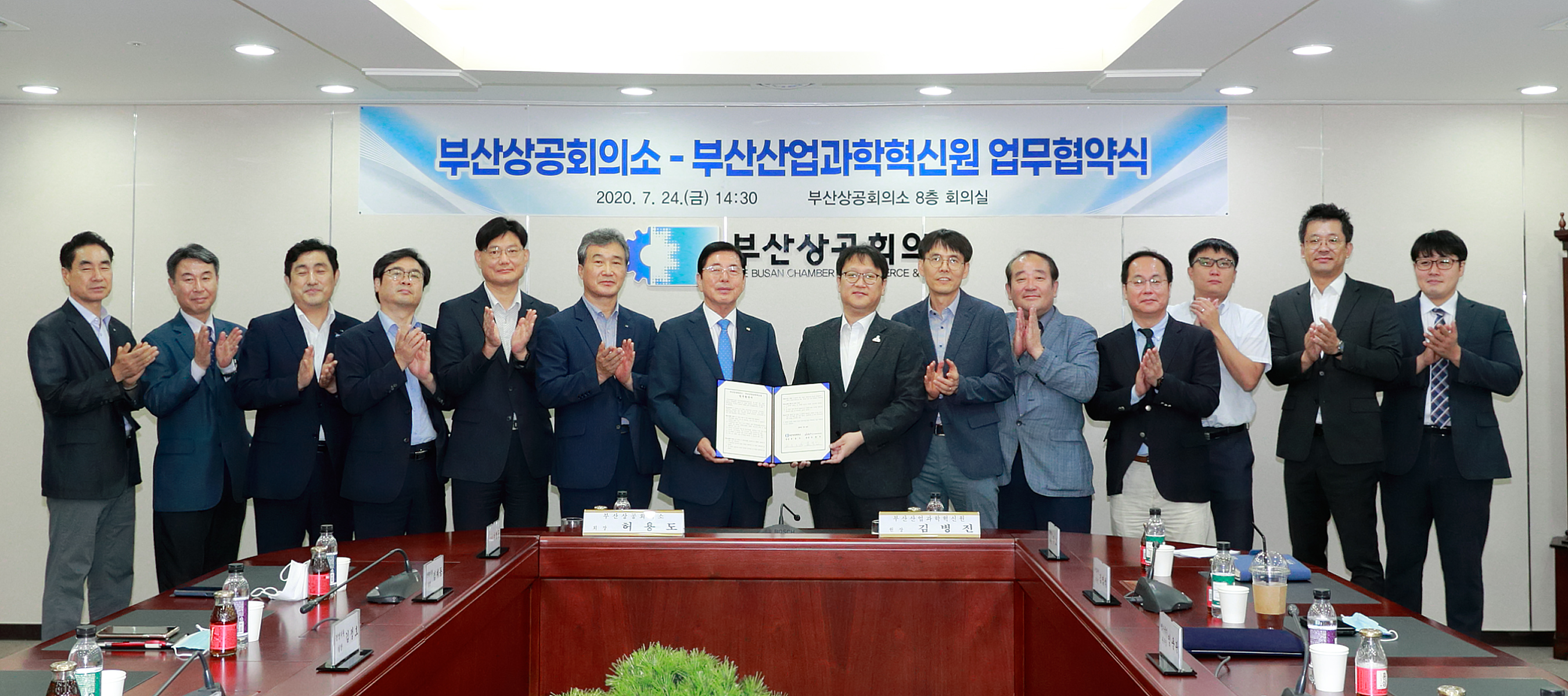 부산상공회의소는 지난 7월 24일 오후 2시 30분 부산상의 8층 회의실에서 지역의 대표적인 산업기술 연구기관인 부산산업과학혁신원과 상호 협력체계 구축을 위한 업무 협약식을 개최하였다.