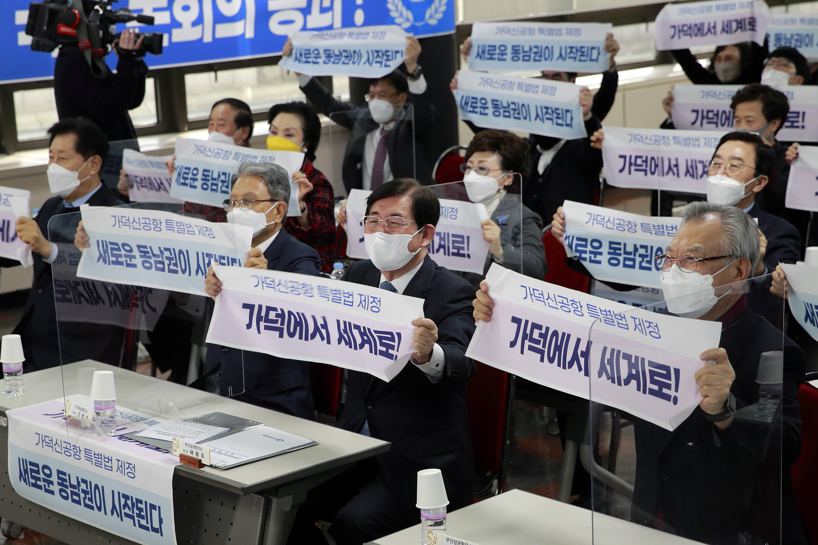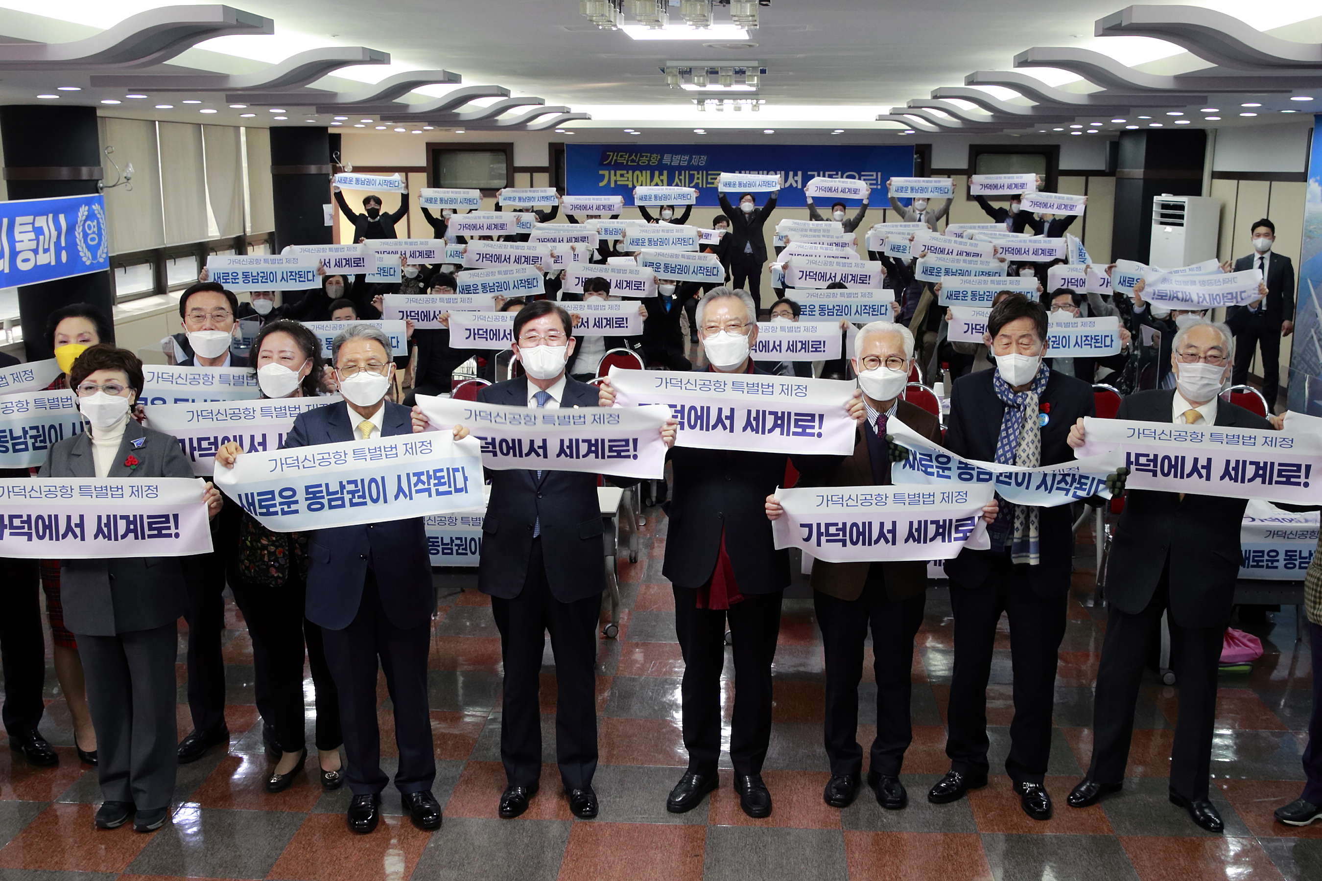 부산상공회의소는 지난 2월 26일(금) 오후 4시, 부산상의 국제회의장에서「가덕도신공항 건설 특별법안」국회통과를 환영하는 축하행사를 개최했다.