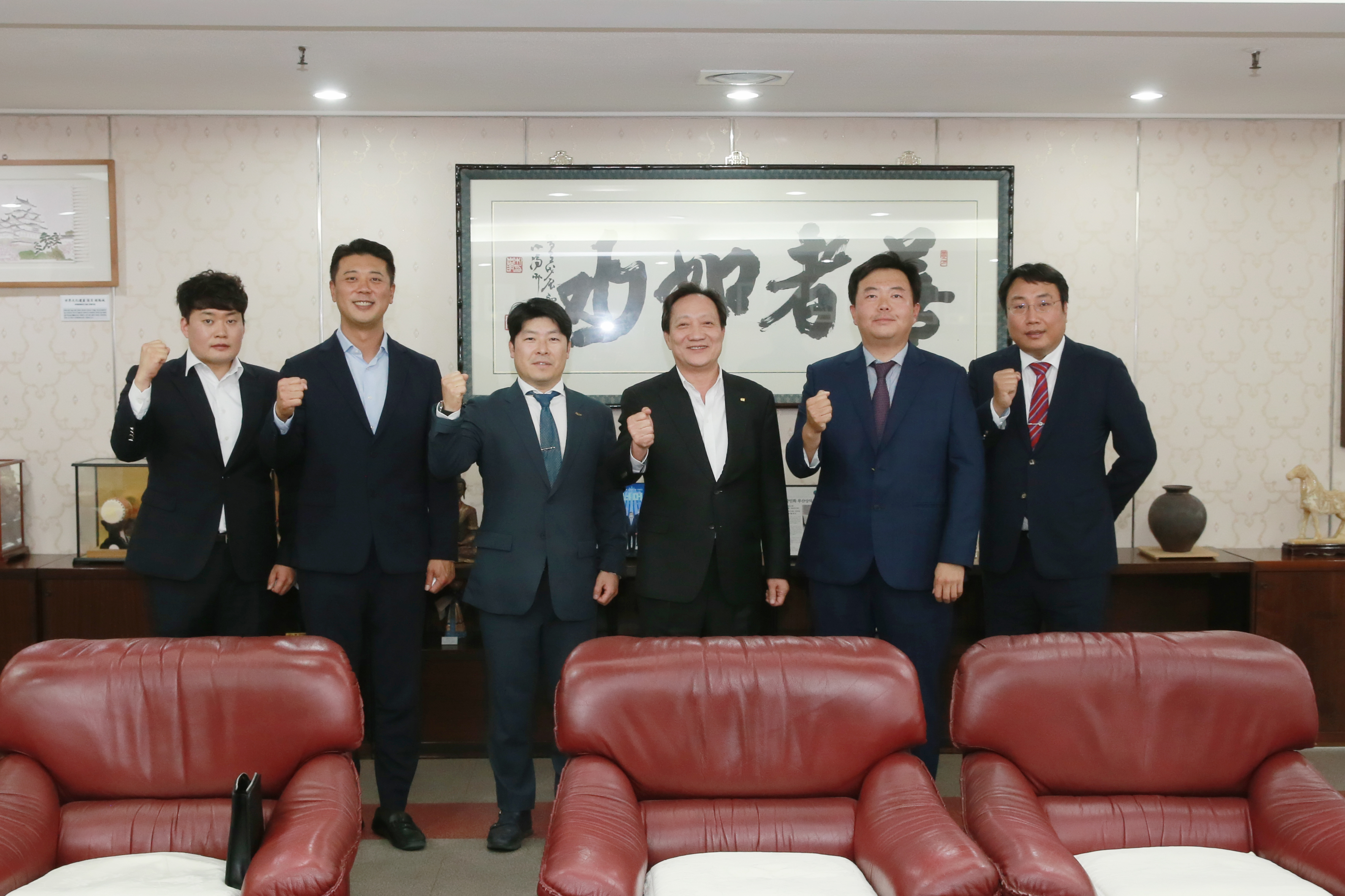 부산상공회의소 장인화 회장은 24(월) 오후 15시 부산상의를 예방한 박재영(대륙금속(주) 전무이사) 차세대기업인클럽 회장과 박철홍(용성씨엔에어 대표이사)부회장, 김기덕((주)삼한종합건설 부사장)부회장, 류상훈((주)모든 대표이사)부회장, 이충열(동광무역상사 대표이사)사무총장 등을 접견하고 지역경제 활성화를 위한 환담을 나누었다.