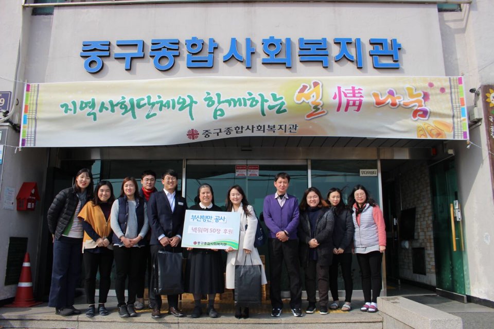 부산항만공사는 지난 2월 14일(수) 민족 최대 명절인 설을 맞이하여 부산항 항만 인근 복지관, 고아원, 미혼 모시설 등 15개 복지시설에 명절선물세트와 온누리 상품권을 각각 전달하여 독거노인, 미혼모가정 등 지역 사회 소외계층이 따뜻한 설명절을 보낼 수 있도록 나눔의 가치를 실천하였다.