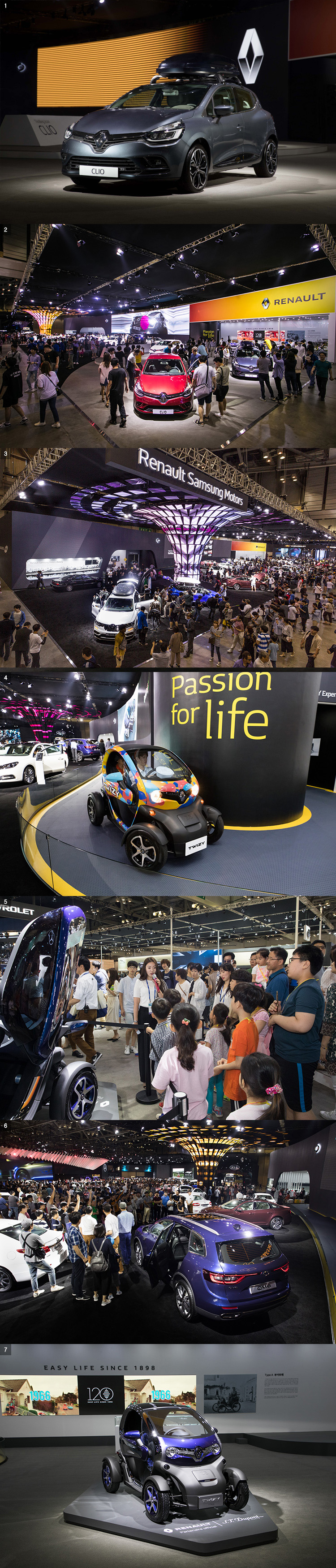 이번 부산모터쇼에서 르노삼성차는 르노삼성존과 르노존으로 브랜드를 나누어 전시관을 별도로 구성해 독립적으로 각 브랜드의 클래식 모델들과 현재 판매되는 르노삼성차의 모든 라인업을 선보였다. 특히 소형차 르노 클리오와 국내 최초 공개된 한정판 QM3 RE S-에디션, 초소형전기차 트위지 에스.티. 듀퐁 에디션을 비롯해, 르노 120년 주년을 기념한 브랜드 최초의 생산판매 모델인 ‘Type A 부아트레(Voiturette)’, 국내에 단 10대만 생산된 클래식 모델 SM530L 등이 전시해 많은 관람객의 이목을 끌었다.