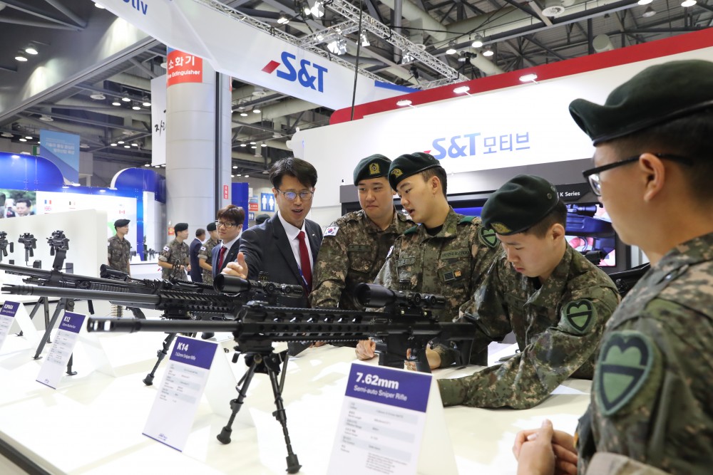 S&T그룹의 주력 방산업체인 S&T모티브와 S&T중공업은 지난 9월 12일부터 16일까지 5일간 고양시 일산구 킨텍스(KINTEX)에서 열리는 ‘대한민국 방위산업전(DX Korea 2018)’에 참가했다. 소구경 화기 제조업체 S&T모티브와 중기관총, 자동포, 전차 변속기 등을 생산하는 S&T중공업은 총면적 276㎡ 규모의 전시장에 K2C/K2C1 소총, K12 기관총, K-14 저격용 소총 및 현재 개발 중인 차세대 경기관총, 비살상용 권총 등 K계열 신형 첨단 소구경 화기류를 비롯해 K6 중기관총, K9 자주포, 각종 전차 변속기 등 핵심 방산품들을 전시했다. 대한민국 방위사업전은 국내 최대 규모의 지상무기 전시회로 2014년부터 격년제로 개최하며 올해 4회째다.  S&T모티브와 S&T중공업은 매회 기존 무기의 기능을 향상시킨 개량형 모델과 로벌 트렌드에 맞는 신규 개발품들을 전시해 국내외 언론사들과 군 관계자들에게 많은 주목을 받았다.  특히 S&T모티브 부스는 ‘자주국방’의 기치 아래 설립된 1970년대 국방부 조병창 시절부터 지금까지 대한민국 개인화기들이 발전해온 모습을 한 눈에 볼 수 있는 공간도 조성됐다. 군 관계자들은 국내 방위산업 기술력 발전에 대해 아낌없는 찬사를 보냈다. 이번 전시회에서도 군 관계자 및 해외 바이어들은 권총, 소총, 기관총, 저격용 소총 등 여러 총기류들과 중기관총, 자주포 등 다양한 방산품들을 한자리에서 보며 회사 관계자들과 향후 방위사업에 관한 비즈니스 미팅을 가졌다.